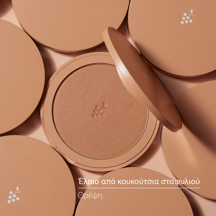 Η Long Lasting Bronzer Powder Vinocrush σας χαρίζει όλο τον χρόνο έναν φυσικό, ηλιοκαμμένο τόνο. Η σύνθεσή της έχει ως βάση ορυκτές χρωστικές χωρίς ταλκ και είναι εμπλουτισμένη με αντιοξειδωτικές πολυφαινόλες σταφυλιού, ενώ η μοναδική απόχρωσή της ταιριάζει σε όλες τις επιδερμίδες για υγιή λάμψη χωρίς ιριδισμούς.